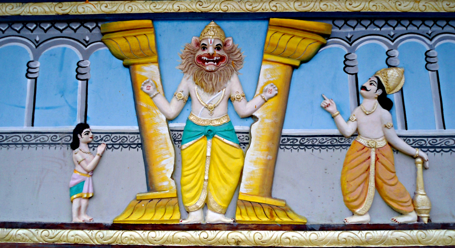 It is interesting to notice that at the first sight of lord Narasimha, both Prahlada and Hiranyakashipu exclaim – “so you are God. this is how you look”. Obviously both of them have also not seen God before that moment in physical form. God only manifested in the form, shape and place that was the most appropriate as in the minds of the caller.