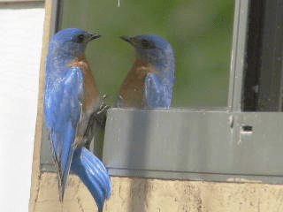 The young man was in a blissful state observing a small chirping bird working hard with its beak on a window perhaps imagining the image on the window to be another bird, or trying to break the glass to get into the room in anticipation of different experience.