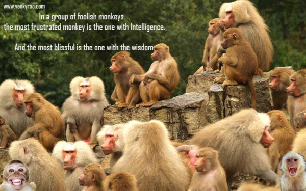 In a group of foolish monkeys…. the most frustrated monkey is the one with Intelligence and the most blissful is the one with the wisdom.